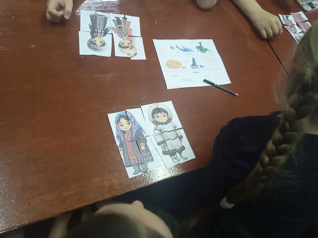 С первых минут атмосфера наполнилась азартом и любопытством. Дети с восторгом принялись разгадывать увлекательные загадки, посвященные многоликим народам России. Каждый ответ приближал их к пониманию уникальности и самобытности каждой культуры. Далее их ждали хитроумные ребусы, где на первый взгляд обычные изображения скрывали имена всеми любимых сказочных персонажей.